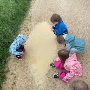 Unser Garten ist bei jedem Wetter ein Abenteuer. Ob im Sandkasten, beim schaufeln und graben oder auf der Rutsche. Auch die Matschküche wird fleissig bespielt. Für die grossen Pfützen gehen wir spazieren.