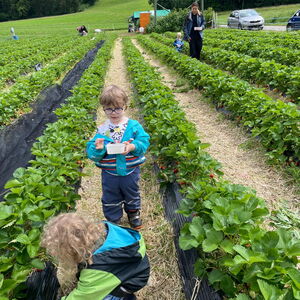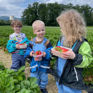 Spontan gingen die Fledermäuse auf das Erdbeerfeld in Däniken. Mit dem Bus und Zug fuhren wir nach Dulliken und von dort ging es zu Fuss bis zum Erdbeerfeld. Die Kinder pflückten ganz fleissig die roten Beeren bis ihr Behälter voll war. Das Naschen dabei, durfte auf keinen Fall fehlen, sodass alle für den Rückweg gestärkt waren.