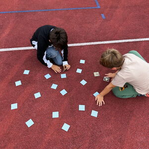 Auf dem Sportplatz fanden spielerische Stafetten statt. In Gruppen rannten die Kinder mit Puzzleteilen und Memoriekarten Hin und Her und versuchten die Teile zusammen zu setzen und Paare zu finden. 🏃♀️🏃